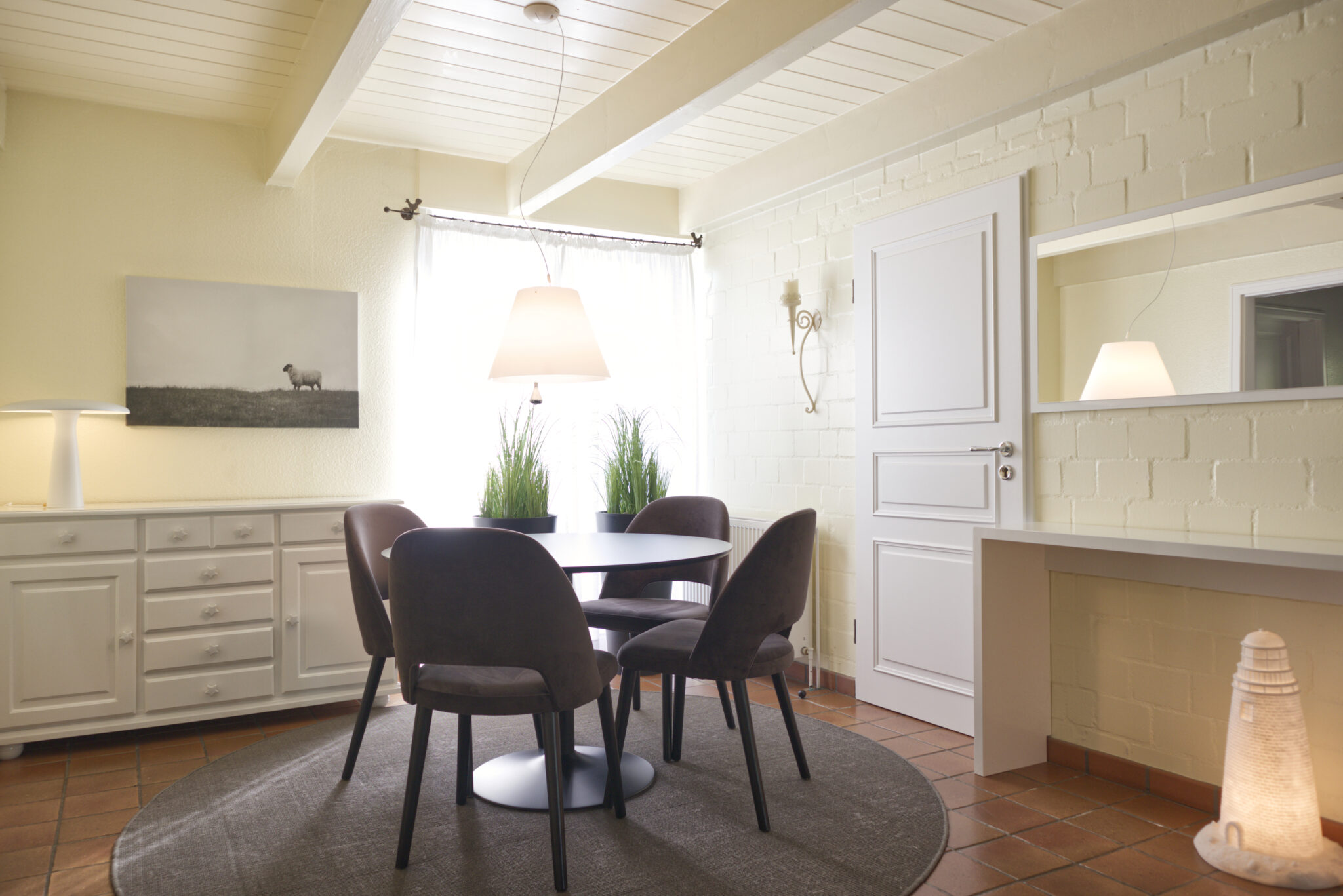 Aber nicht nur unser Service wird Sie begeistern, auch das harmonisch und hochwertig eingerichtete Haus selbst lässt keine Wünsche offen: neben einem großen Wohnraum mit Kamin und Bibliothek sowie angrenzender Terrasse haben Sie eine offene Küche mit Frühstückstresen, modern und überkomplett ausgestattet. Natürlich hat auch dieses Haus eine anspruchsvolle Technik: ein Flat-TV in HD+ Qualität, eine BOSE Surround-Anlage sowie Telefon und kostenfreier Internetzugang.