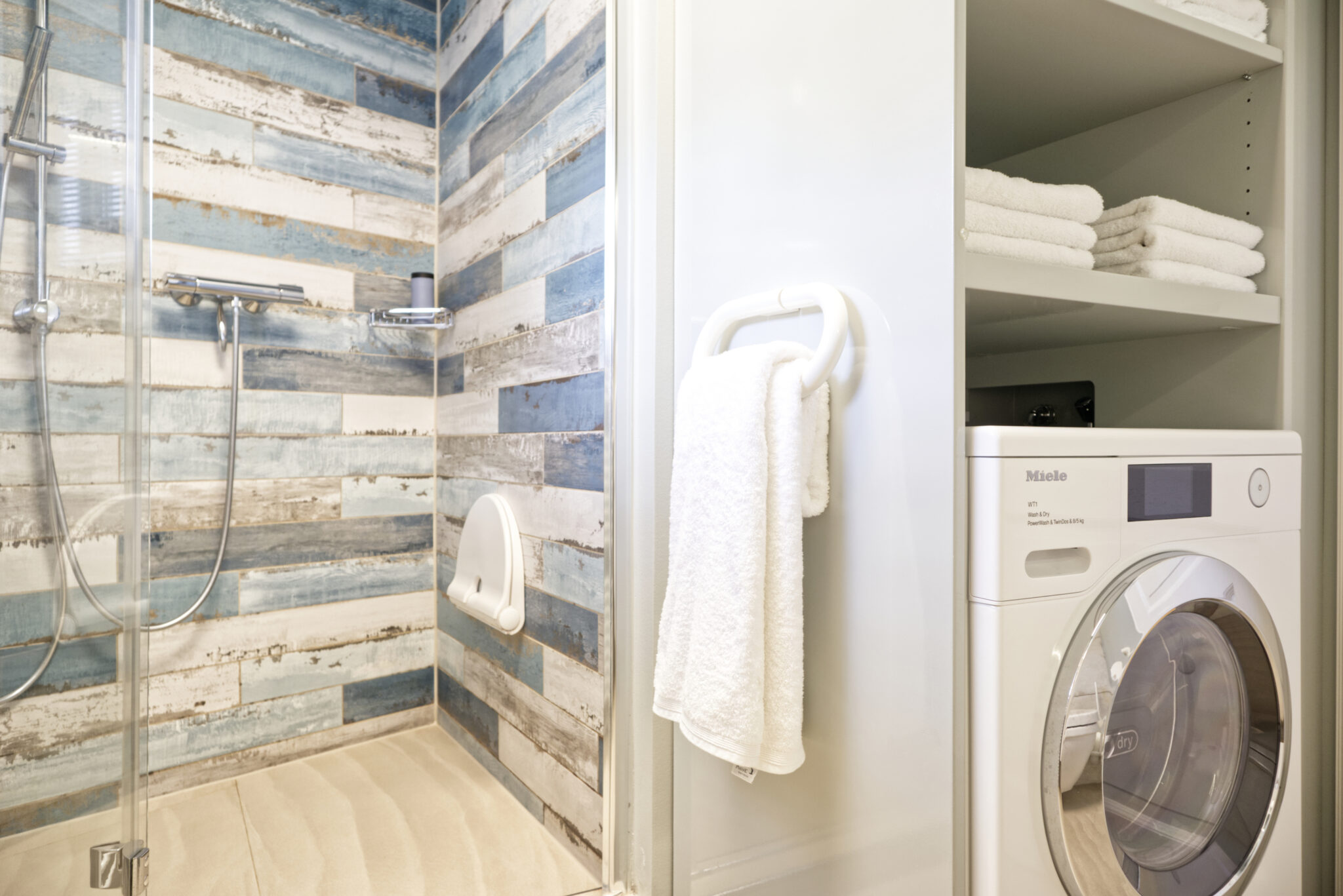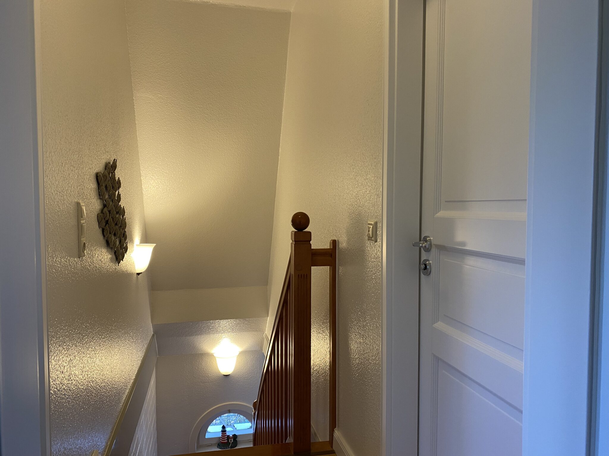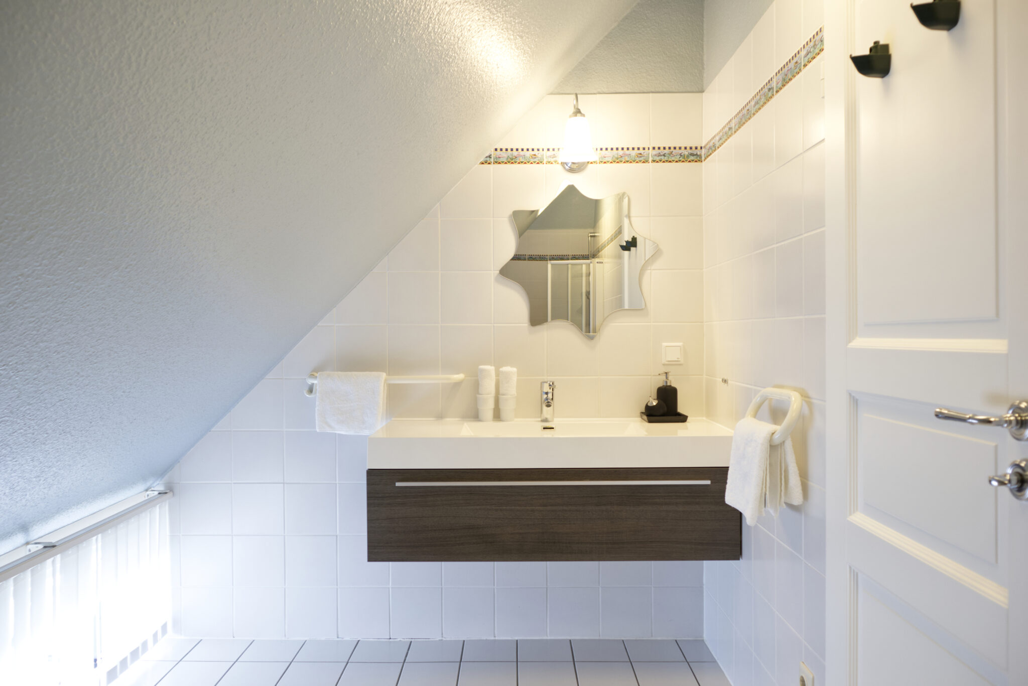 Die beiden Schlafräume sind in der oberen Etage, im oberen Tageslichtbad finden Sie eine komfortable Eckbadewanne vor, während das Tageslichtbad im Erdgeschoss über eine große Rainshowerdusche verfügt. Auch hier steht Ihnen Ihr Parkplatz mit eigener Wallbox direkt vor der Haustüre zur Verfügung, so dass Sie keine langen Wege zum Haus zurücklegen müssen.